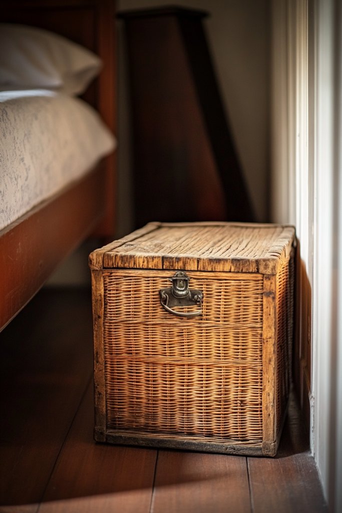 17. Add a Wooden or Wicker Trunk as a Functional Decor Piece