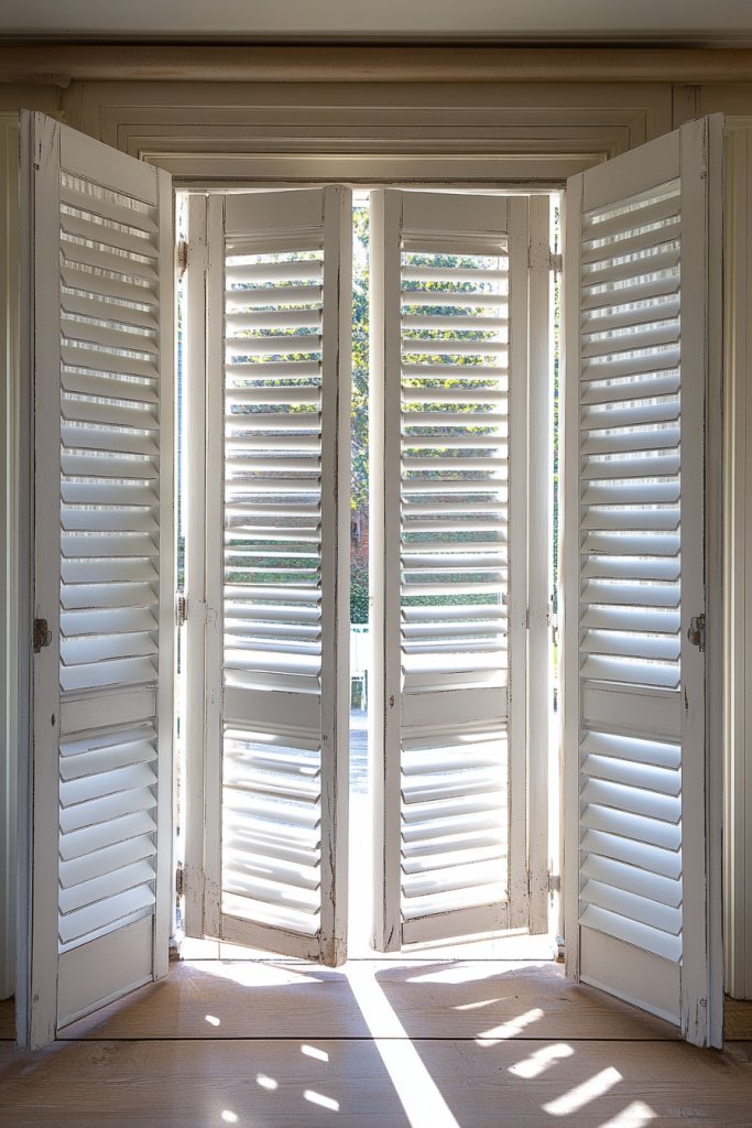 Choose between fixed shutters or operable versions for added functionality. For a more modern twist, pair shutters with sheer curtains for layered light control. Paint or distress shutters in shades that match your wall colors or furniture to create a cohesive look. In small spaces, shutters can visually enlarge the window area, making rooms feel more open. Seasonal colors or finishes can also refresh the space without major changes.