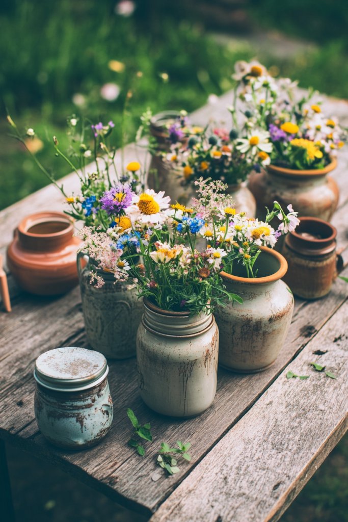 Looking for an easy way to add a touch of rustic charm to your table or shelf? Mason jars and ceramic vases serve as perfect, budget-friendly centerpieces that bring a cozy, vintage vibe. They’re versatile, functional, and can be styled in countless ways to suit your cottage aesthetic. If your surfaces feel empty or uninspired, a charming jar or vase might just do the trick.