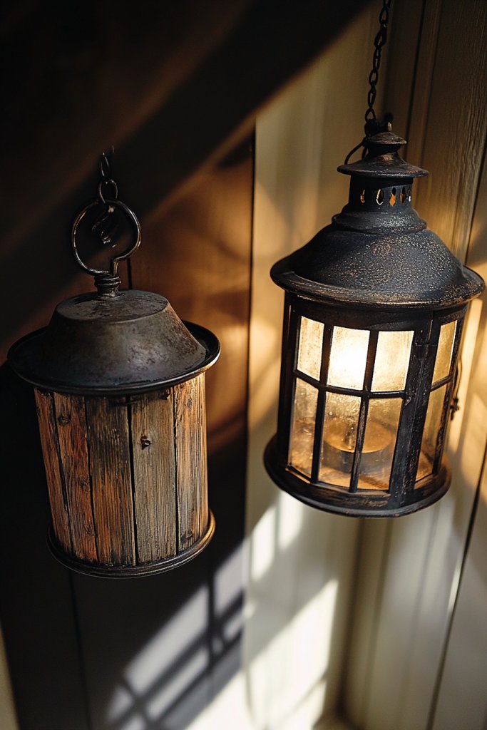 7. Hang Rustic Iron or Wooden Lanterns for Ambient Lighting
