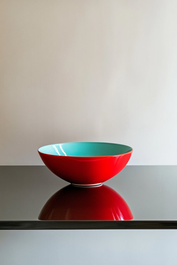 Imagine a neutral backdrop with a pop of intense color—like a bright yellow or fiery red accent pillow on a sleek bench, or a vivid sculpture on a console. Colorful bowls, trays, or decorative objects instantly draw the eye and add personality. The textures vary from smooth ceramics to textured textiles, creating visual contrast that feels lively and inviting. Lighting enhances the colors, making the space feel energetic and welcoming.
