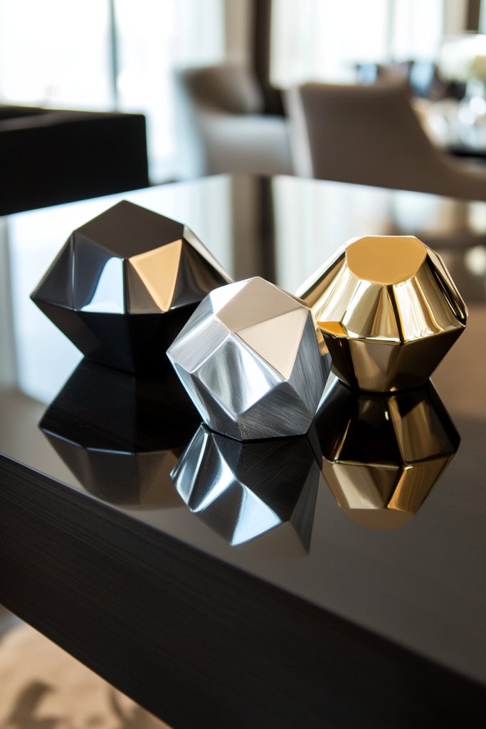 5. Modern Geometric Decor with Metallic Accents