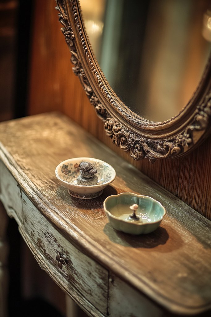 7. Vintage-Inspired Mirror with Small Decorative Items