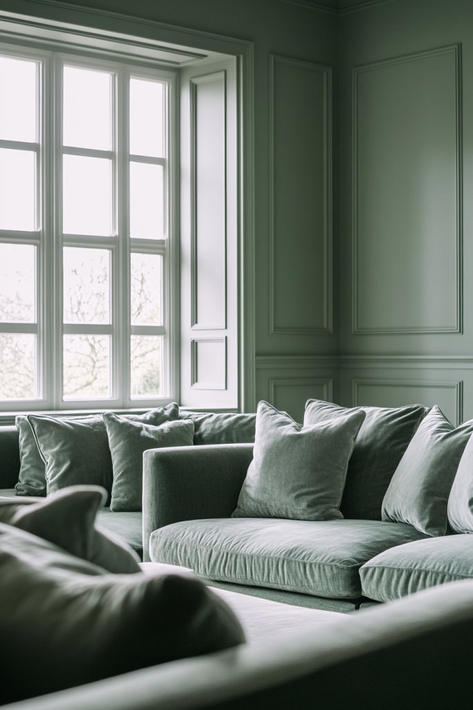 You can adapt this monochrome approach for different seasons by swapping textures—think a cozy knit blanket in winter or light linen curtains in summer. For a more minimalist look, opt for sleek, streamlined furniture in matching tones. If you prefer a warmer vibe, incorporate soft creams or beige accents that blend seamlessly with Evergreen Fog. This palette also works well in small spaces, making them feel larger and more cohesive.