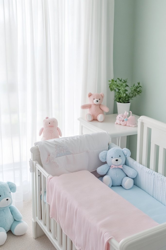 Switch pastel accents to your favorites—lavender, peach, or pale yellow—to personalize the space. Incorporate textured fabrics like velvet or linen for bedding and curtains. For a more modern look, add geometric patterns or minimalistic wall decals. This palette adapts easily as your child grows, with simple updates to textiles and accessories.