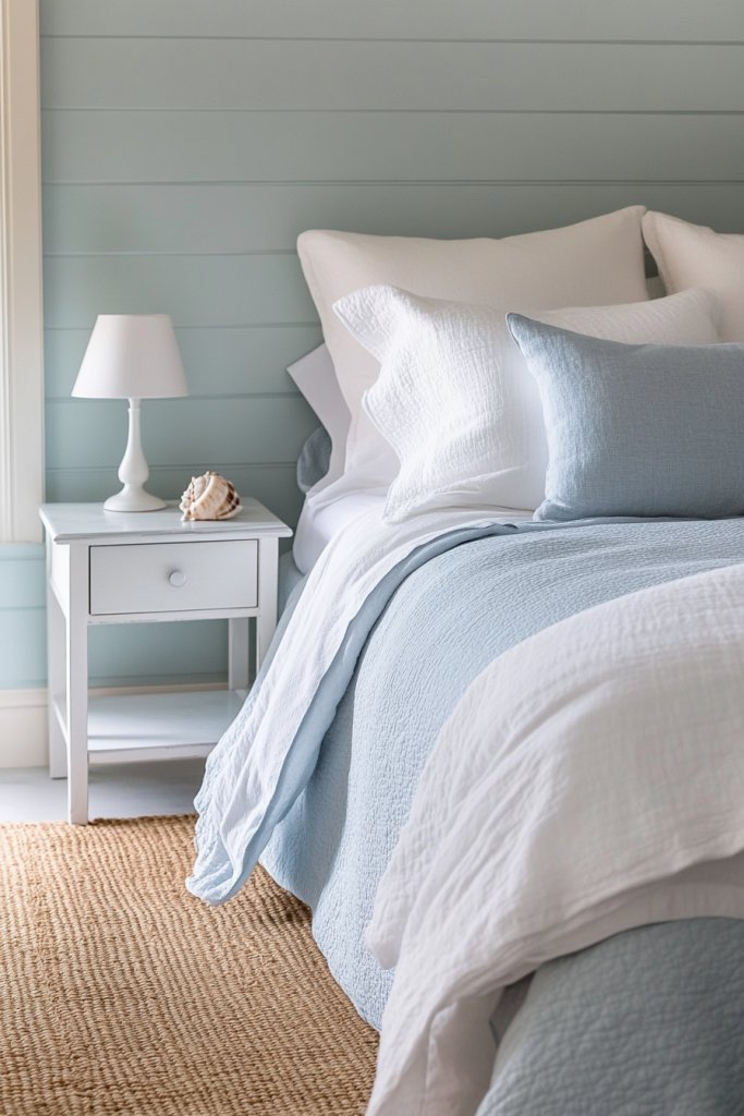 2. Coastal-Inspired Bedrooms with Light Neutrals and Sea Blues