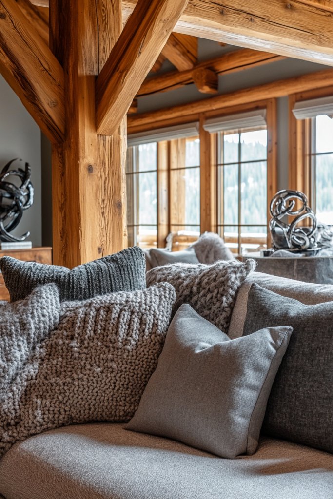 6. Rustic Living Room with Warm Wood and Cool Gray Highlights