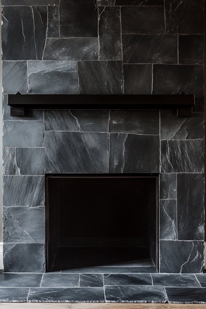 Want a fireplace that’s both stylish and functional? Chalkboard-inspired slate tiles combine rustic charm with a practical twist. If you enjoy customizing your space or changing decor frequently, these tiles offer a playful yet sophisticated solution.