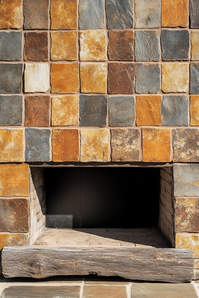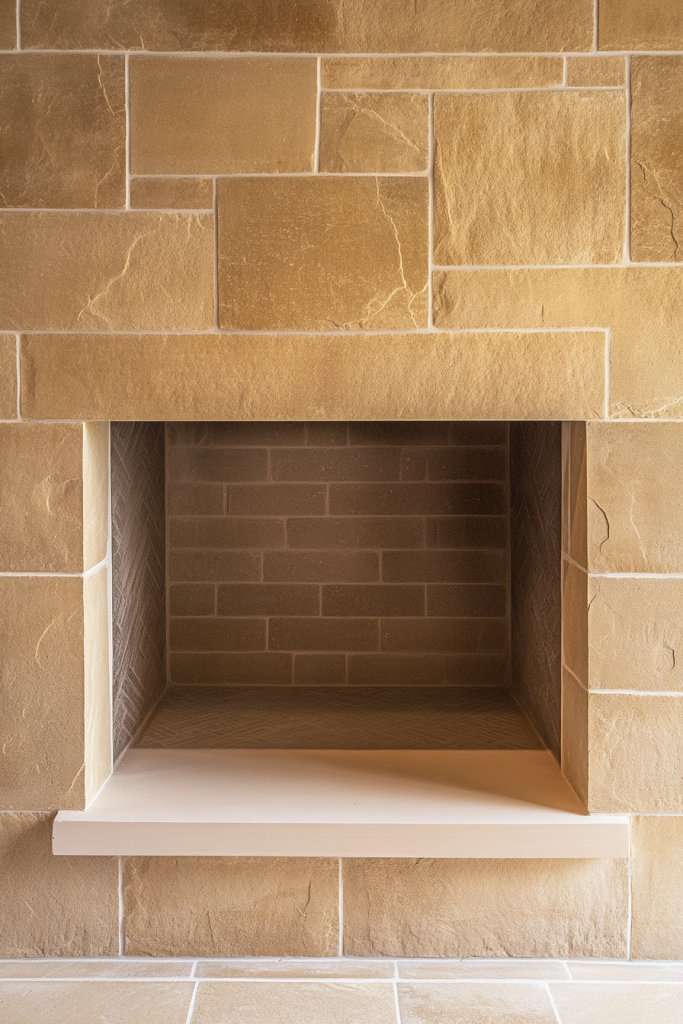 Sandstone tiles create a soft, organic feel that enhances farmhouse warmth and comfort. They’re durable, aging beautifully, and require minimal maintenance. This natural look makes your fireplace a serene, inviting space—perfect for relaxing and unwinding. Embrace the beauty of natural textures.
