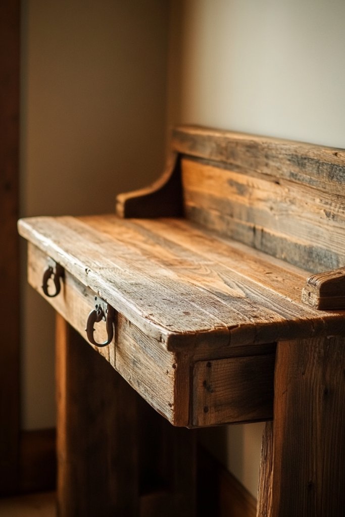 1. Reclaimed Wood Desk with Vintage Hardware