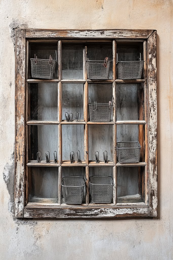 5. Vintage Window Frame as a Wall Organizer