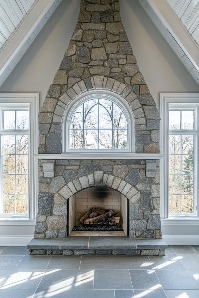 Craving a fireplace that feels like it belongs in a fairy tale? An arched stone fireplace with side windows offers a timeless charm that never goes out of style. It’s perfect for creating a cozy, elegant atmosphere reminiscent of historic homes. If you love classic design with a touch of grandeur, this idea is your new favorite.