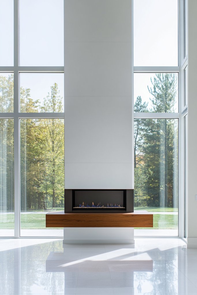 11. Contemporary Fireplace with Floating Mantel and Floor-to-Ceiling Windows for Openness