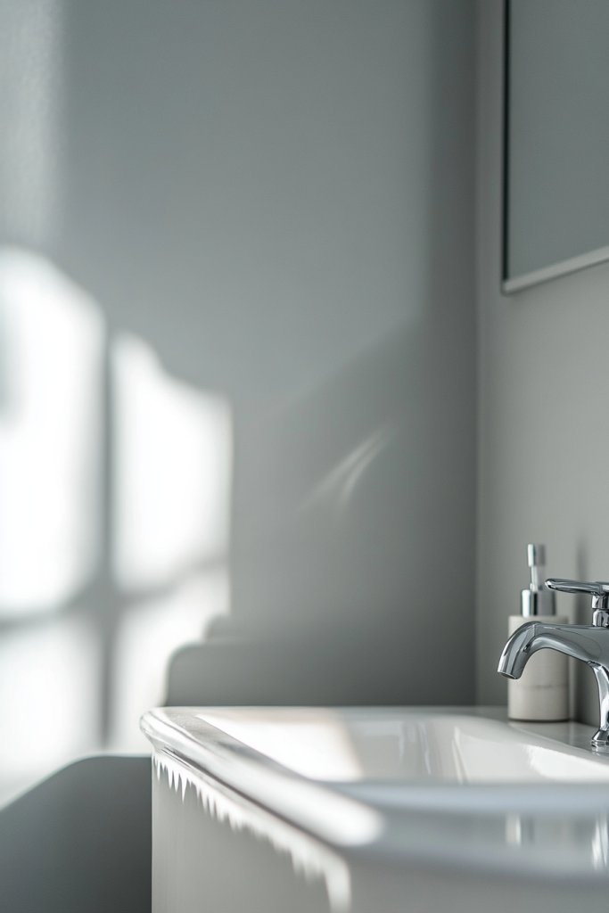 A light grey satin or eggshell wall finish creates a calm, sophisticated vibe that’s easy to maintain. It’s a timeless choice that will serve your decor for years. Confidence in this classic look grows as you see how well it complements various design elements. Enjoy a fresh, modern backdrop that elevates your entire bathroom experience.
