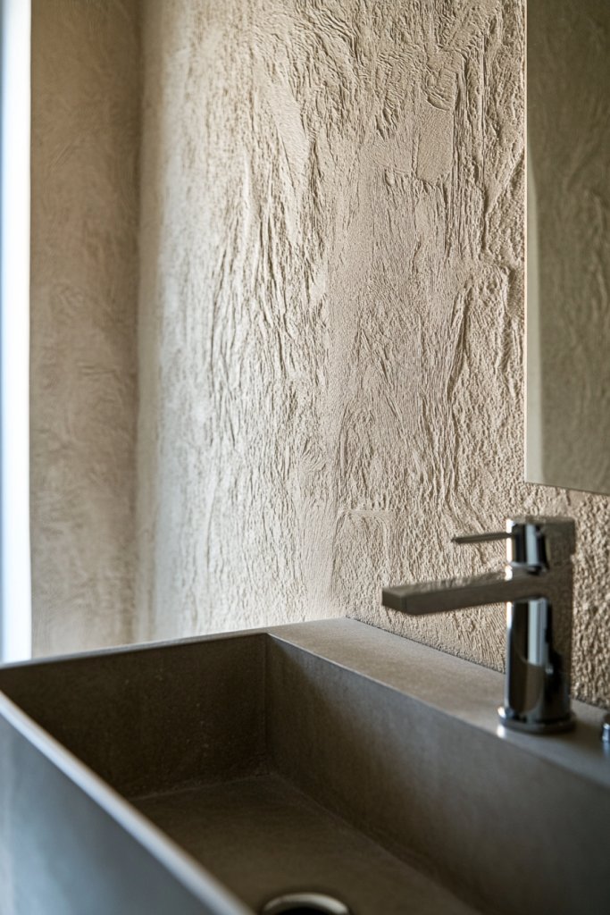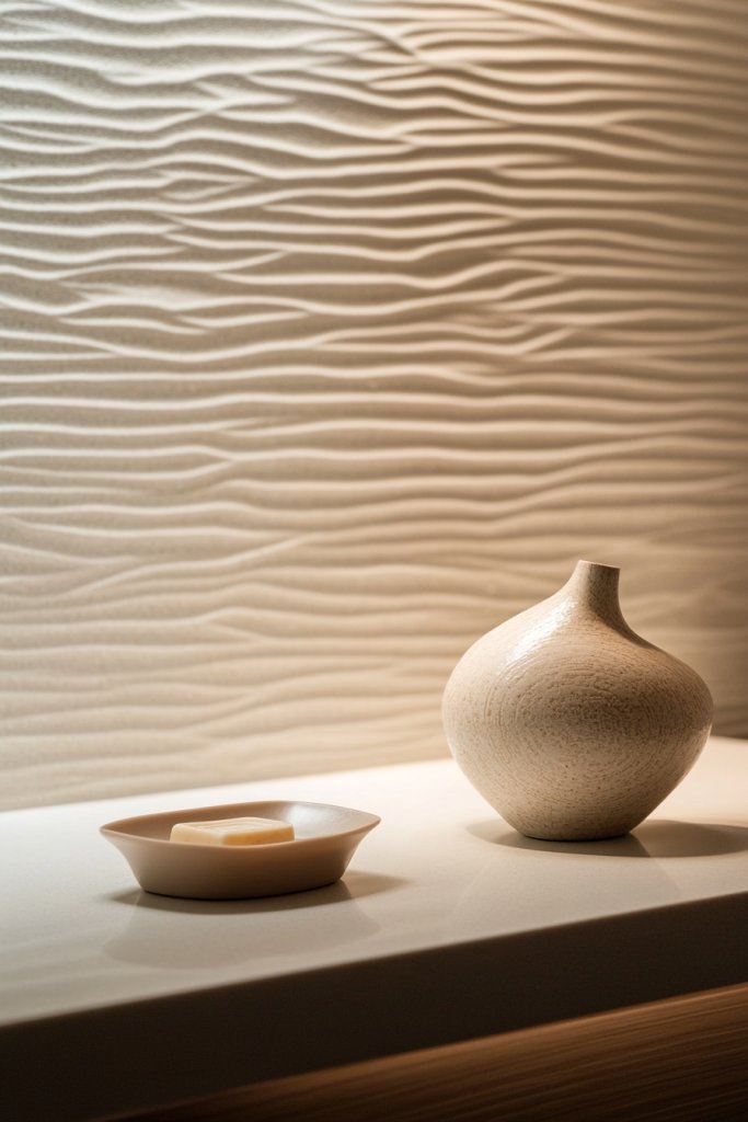 Coordinate with accessories in similar tones or patterns for a cohesive, refined look. Textured walls elevate your bathroom’s style with a subtle, sophisticated touch.