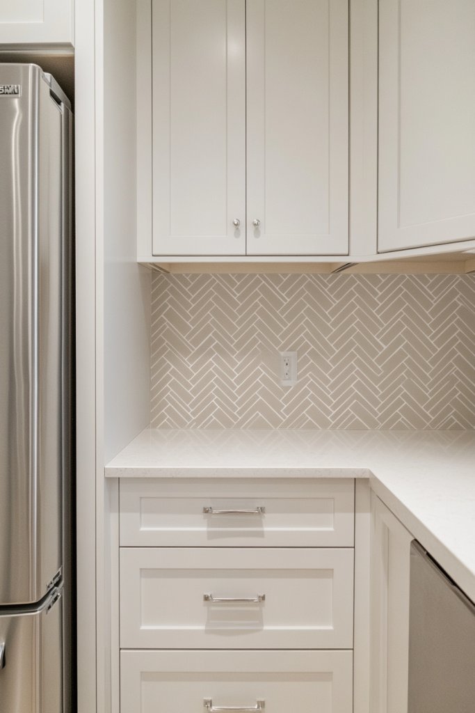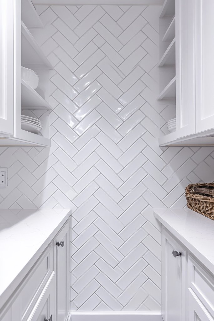 This timeless white herringbone tile instantly elevates your kitchen’s look while remaining easy to clean and maintain. It’s a versatile choice that works with any color palette or style shift you might pursue later. Trust in its classic appeal to give your space a fresh, bright vibe that lasts for years.
