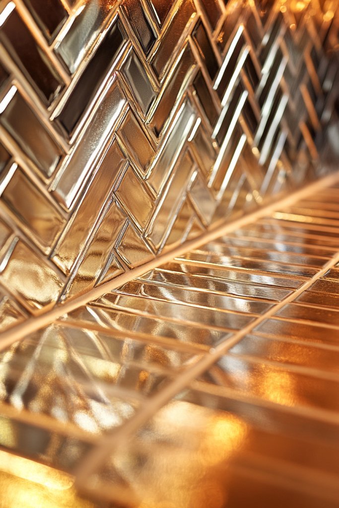 Looking to add a touch of luxury and sparkle? Metallic accented herringbone tiles offer a glamorous upgrade that turns your backsplash into a showstopper. They catch light from every angle, creating a dazzling focal point in any room.