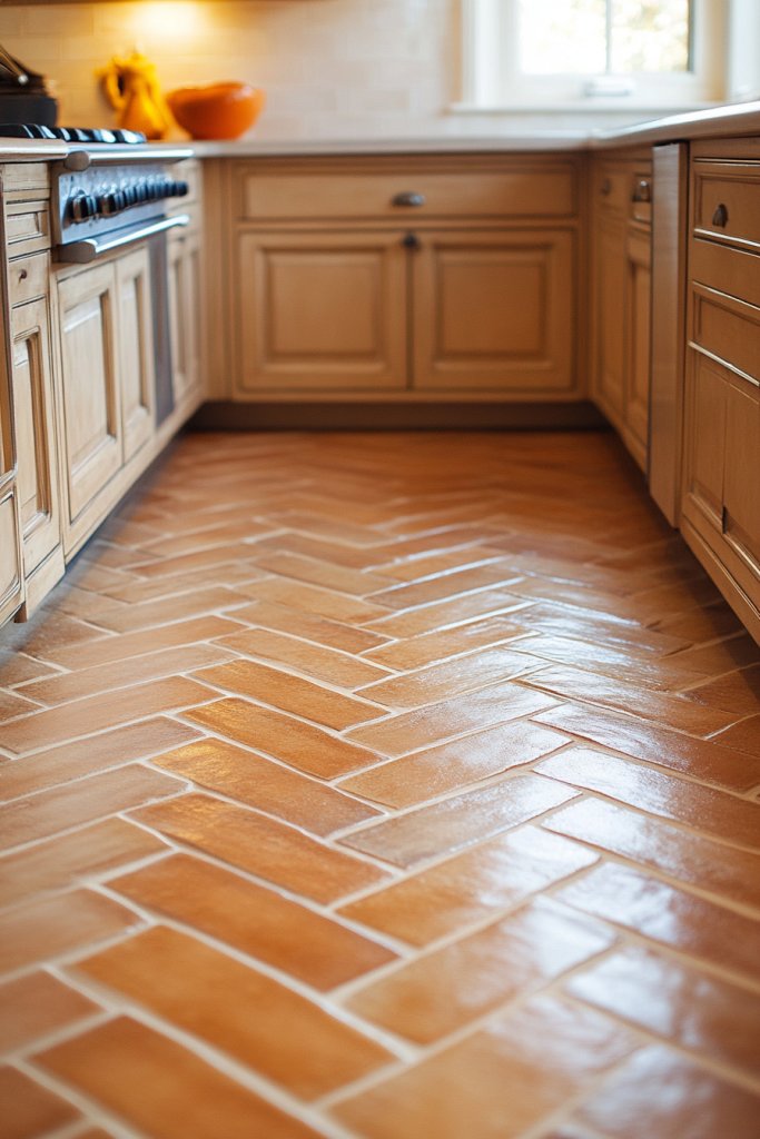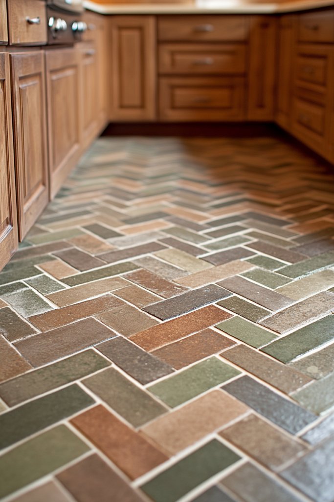 8. Brick-Style Herringbone Pattern with Textured Clay Tiles
