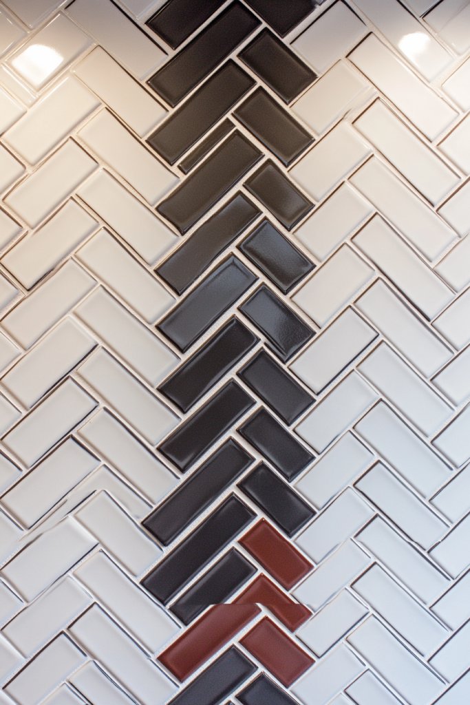 Two-tone herringbone tiles redefine modern style with their bold, graphic appeal. They add a vibrant, energetic feel that suits contemporary or eclectic decor. Trust in their striking contrast to make a statement that’s both timeless and fresh.