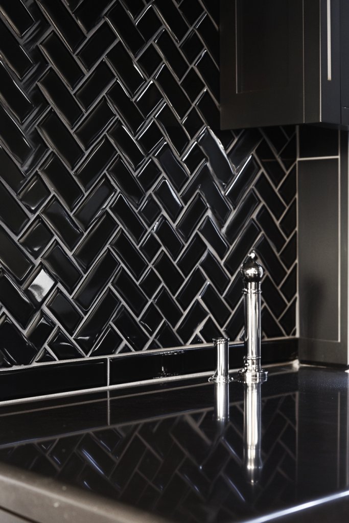 2. Bold Black Herringbone Tiles for Modern Elegance