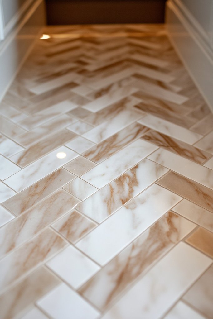 4. Marble Herringbone Subway Tiles for Luxurious Appeal