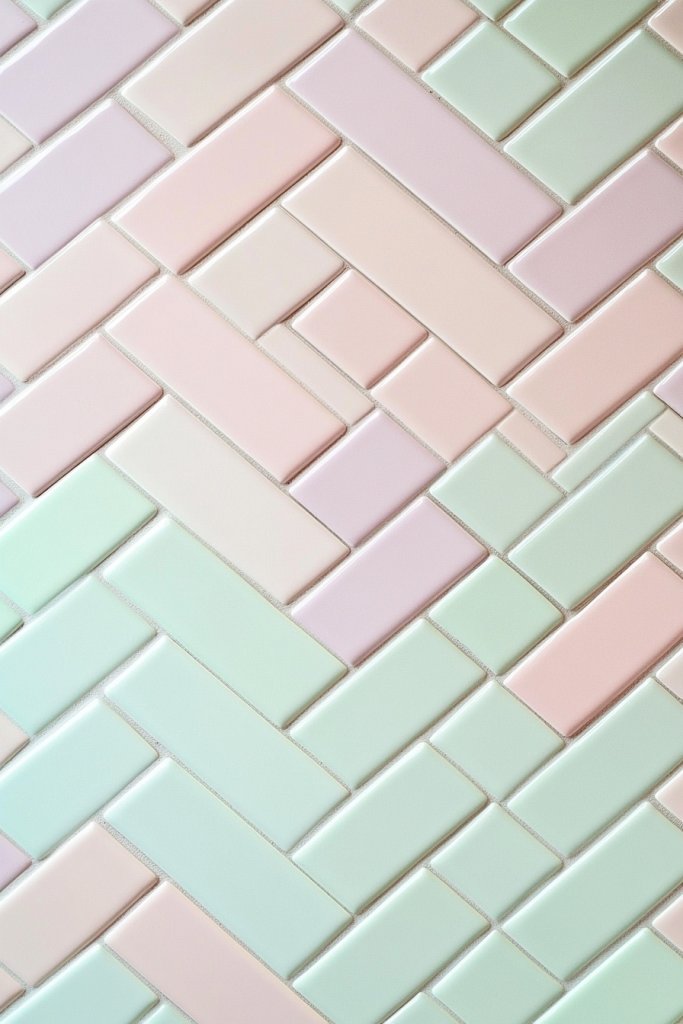 6. Matte Finish Herringbone Tiles in Soft Pastels for Subtle Charm