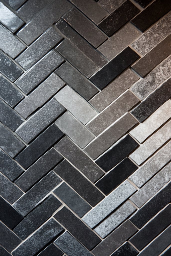 15. Textured Ceramic Herringbone Tiles for Visual and Tactile Interest