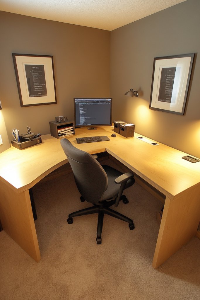 An L-shaped desk turns a corner into a dedicated productivity zone that feels both functional and inviting. It’s a game-changer for small rooms, offering ample work surface without sacrificing style. Ready to optimize your space? This setup boosts focus and makes your home office feel more like a personal retreat than a makeshift corner.