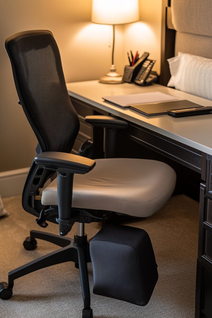 Long hours at your home office can turn into discomfort if your chair isn’t supportive enough. An ergonomic chair paired with a discreet under-desk footrest can make all the difference—boosting comfort and productivity. It’s a simple upgrade that transforms your work session from painful to pleasant. Why settle for less?