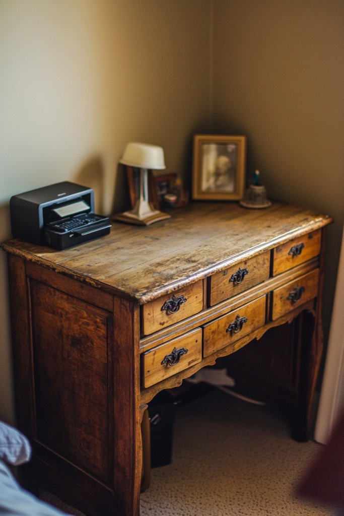 Looking for a unique, charming workspace that stands out? Repurposing a vintage dresser as a desk combines nostalgia with practicality, giving your bedroom personality and function. It’s a perfect solution for those who love a touch of history and craftsmanship. Who wouldn’t want a piece with character?