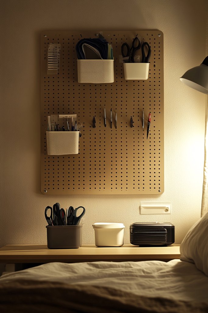 Desktop clutter driving you crazy? A vertical pegboard organizer keeps your supplies within arm’s reach while maintaining a tidy surface. It’s a simple, versatile solution for storing everything from stationery to tech accessories. Who knew organizing could be so satisfying?
