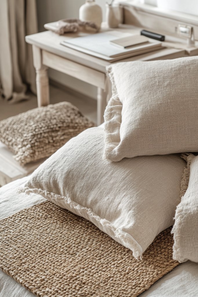 Layer textures with a soft throw or a textured lamp shade. Use natural elements like a small wooden sculpture or a ceramic container to add warmth. Keep decor minimal and cohesive, emphasizing tactile richness over visual overload. Regularly refresh textiles to keep the environment calming.
