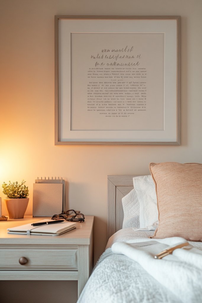 Choose quotes that resonate personally—whether about perseverance, creativity, or calmness. Opt for minimalist wall decals, framed prints, or subtle wall stickers. Change or update art seasonally or as your goals evolve, keeping the space fresh and inspiring. Keep the design aligned with your overall aesthetic for harmony.