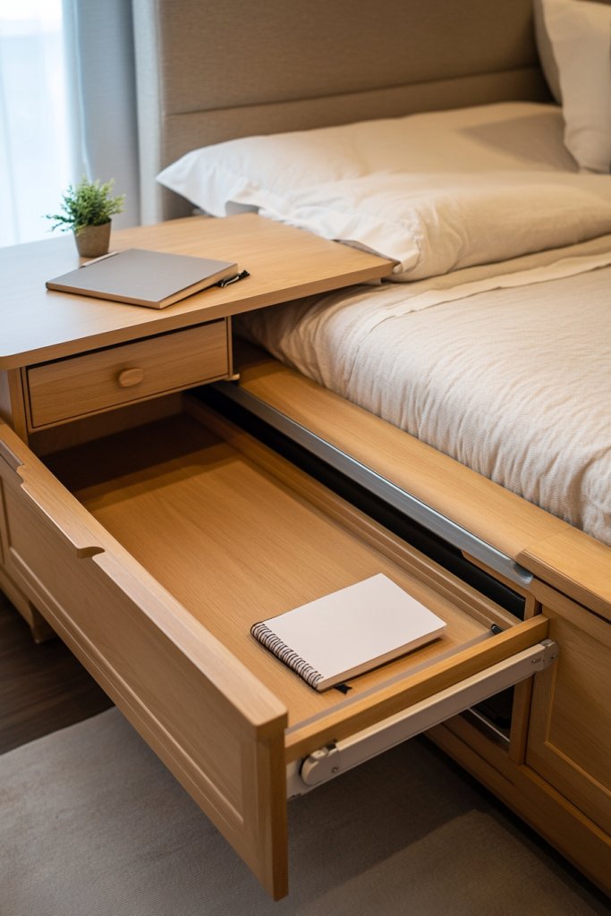 Struggling to find space for work in your bedroom without sacrificing your sleep zone? A multi-functional bedside office turns your nightstand into a productivity hub, making multitasking a breeze. It’s perfect for quick emails or late-night notes without cluttering your main workspace. Why not make your bed area work as hard as you do?