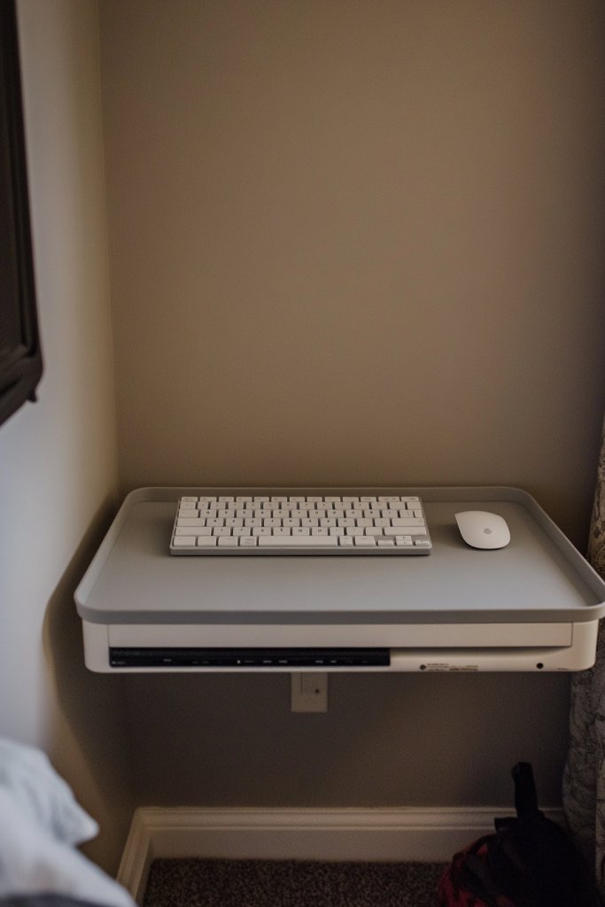 Ever feel cramped in your bedroom, wishing your workspace could somehow vanish or shrink? A compact floating desk is exactly what you need to free up precious floor space while still having a functional area. It’s perfect for those who crave a tidy, uncluttered look but don’t want to sacrifice utility. Plus, who doesn’t love the sleek, modern vibe it adds?