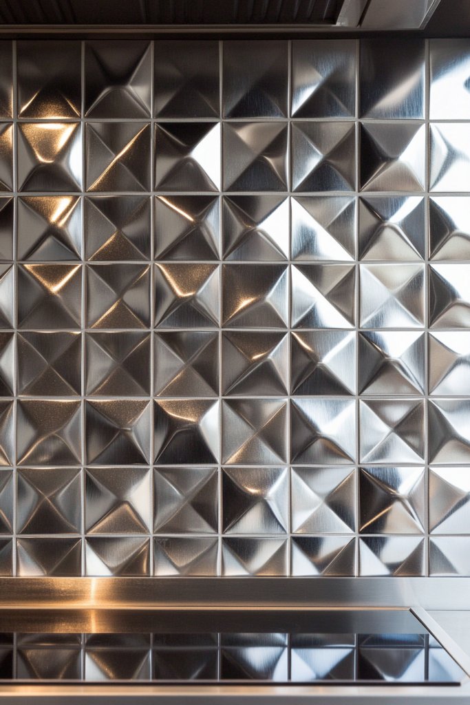During cooking, they catch reflections and add a subtle glow, making the space feel lively. Select tiles in a monochrome palette for a sleek look or combine metallics with matte finishes for contrast.