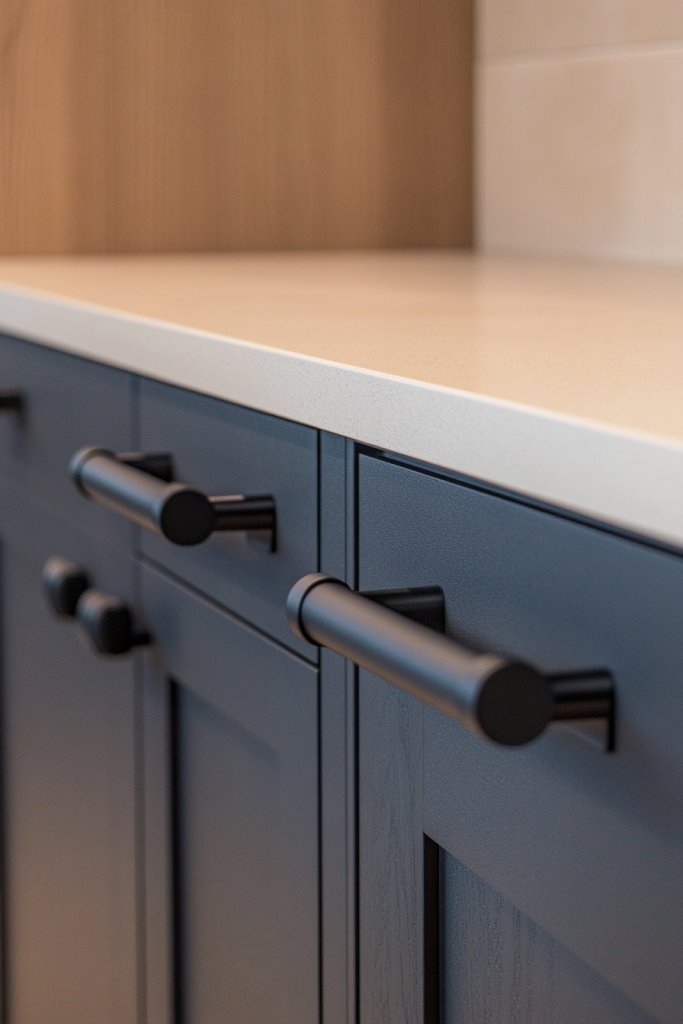 The contrast invites your eye to explore every detail, from pulls to knobs, with a sense of purpose and style. Mix matte black with other matte finishes like dark bronze or gunmetal for layered depth.