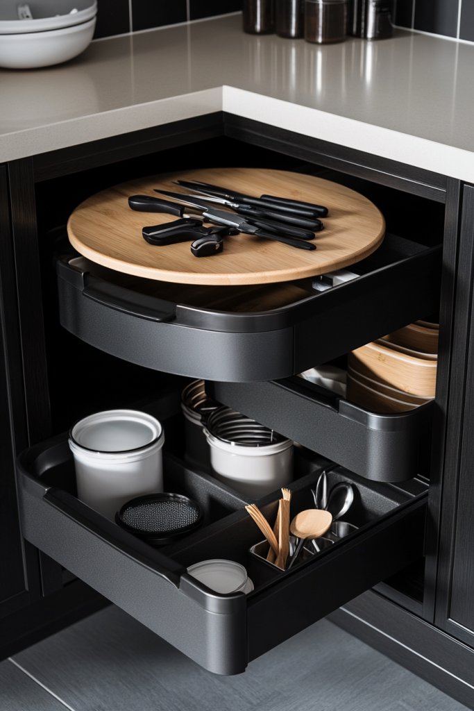 16. Incorporating Modern Storage Solutions Like Pull-Out Drawers and Lazy Susans