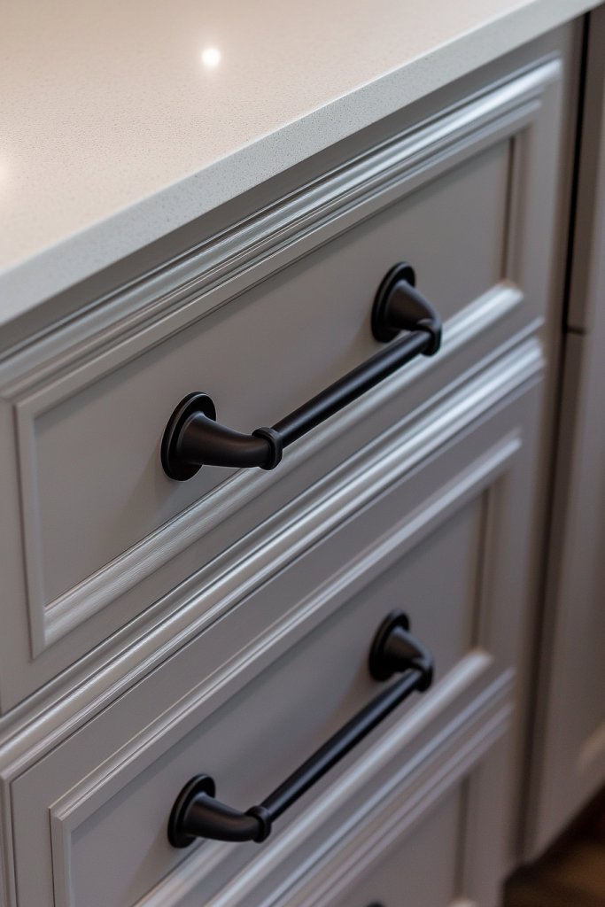 Picture sleek matte black pulls or vintage brass knobs against painted cabinets. Visualize how shiny, textured handles catch the light and add a layer of sophistication. The new hardware can contrast or complement your existing fixtures, creating a cohesive look. It’s like jewelry for your cabinets—subtle but essential.
