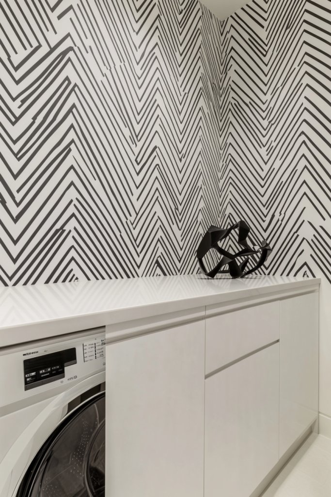 Looking to update your laundry room with a clean, modern vibe? Monochrome patterns can provide a sleek, sophisticated look that’s easy to maintain. Sometimes less really is more—especially when it comes to creating a clutter-free, stylish space. Want a fresh, contemporary update?