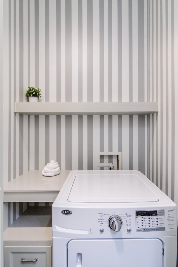 Striped wallpaper adds a dynamic, stylish touch to your laundry area that’s both timeless and trendy. It’s an easy way to make a small space feel larger and more energetic. Ready to stripe up your life? This pattern promises a fresh, lively update.
