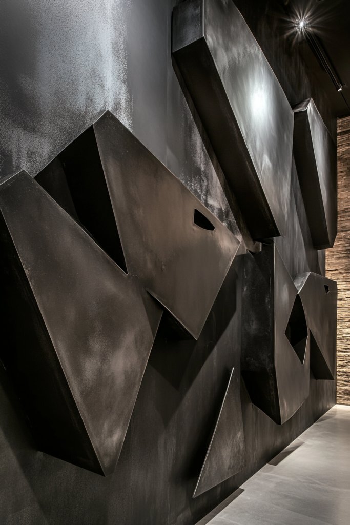 11. DIY Metal Wall Art with Cut-Out Shapes for Industrial Charm