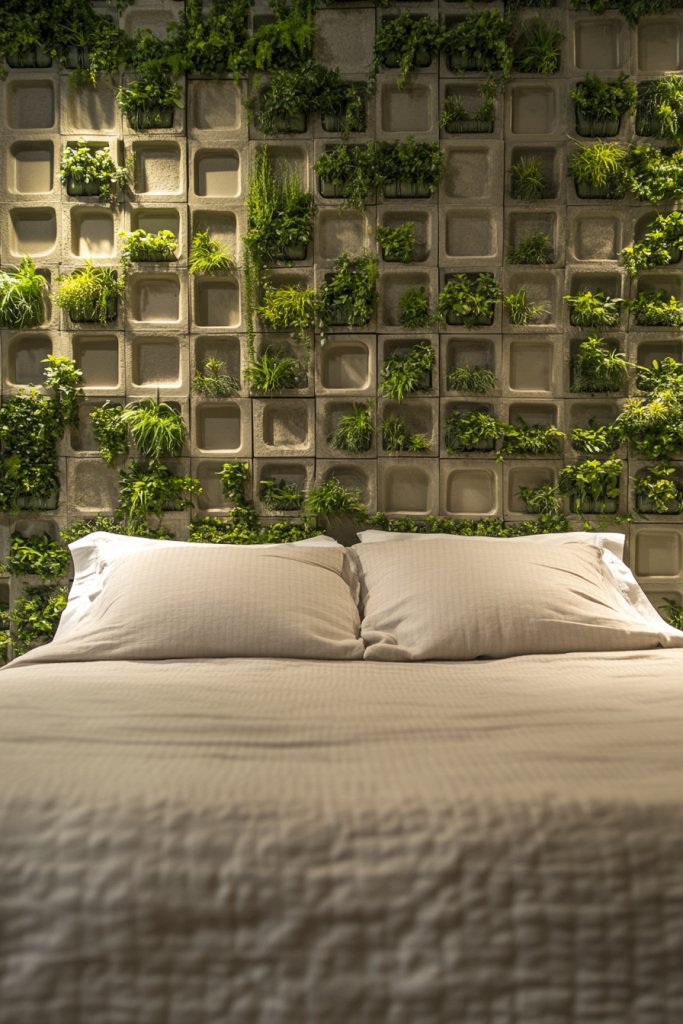 Craving a touch of nature without the hassle of watering or maintaining live plants? A vertical garden wall made from textured panels or decorative storage can mimic greenery’s calming effect. It adds visual interest and a breath of fresh style to your bedroom. Plus, it’s a maintenance-free way to bring a natural vibe indoors.