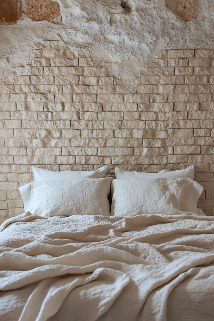 Picture a wall covered in faux whitewashed brick, adding rustic charm to your modern bedroom. The rough texture contrasts beautifully with soft bedding and smooth furniture. When light hits the uneven surface, it creates shadows that add depth and dimension. This look evokes an urban loft or cozy cottage vibe, making your bedroom feel more layered and inviting. The tactile quality invites you to touch and feel the surface, adding an extra sensory dimension.