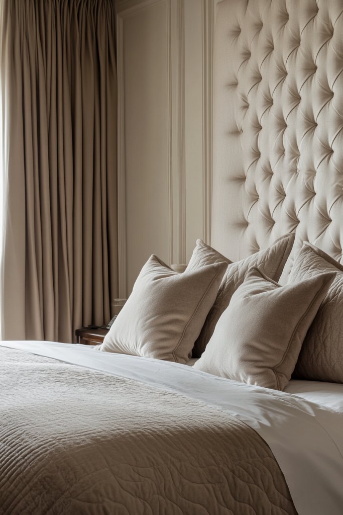 Choose fabrics like velvet, linen, or boucle for different textures and looks. You can opt for buttons or quilting to add visual interest. For a minimalist style, go for seamless panels in a single color; for more personality, mix fabrics and patterns. Seasonal updates include adding decorative pillows or throws that match or contrast the panels. This idea suits both modern and traditional decor, making it highly adaptable.