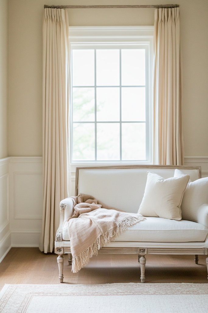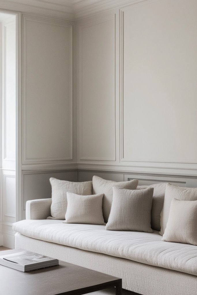 Imagine walls painted in warm cream tones that reflect soft sunlight, making the room glow gently. The furniture blends seamlessly in muted shades, while textured textiles add depth without overwhelming. Light-colored rugs and curtains keep the space airy, and minimal accessories stand out more because of the subdued backdrop. It’s a calming, cohesive visual that invites you to relax, not stress.