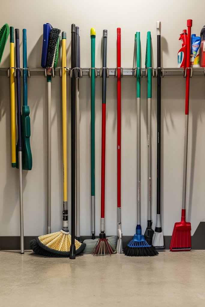 18. Keep Floors Clear with Wall-Mounted Cleaning Tools