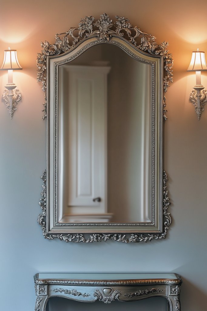 Choose frames with ornate carvings, distressed finishes, or simple elegance depending on your aesthetic. Pair with vintage-inspired hooks, wooden furniture, or textured rugs for a complete look. For seasonal updates, add decorative elements like a wreath or a small shelf nearby. The mirror’s timeless appeal allows it to blend into various decor themes.