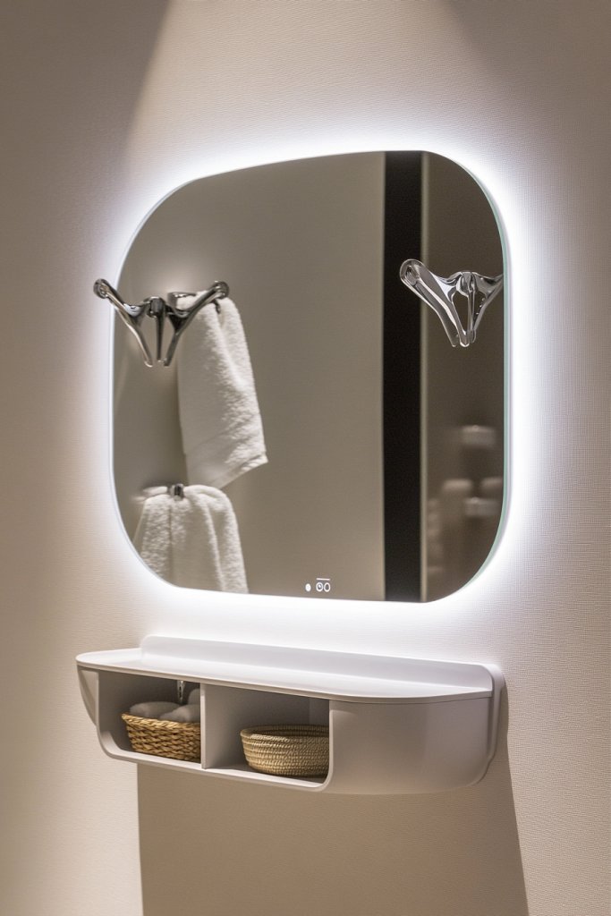 17. Mirror with Built-in Storage or Hooks