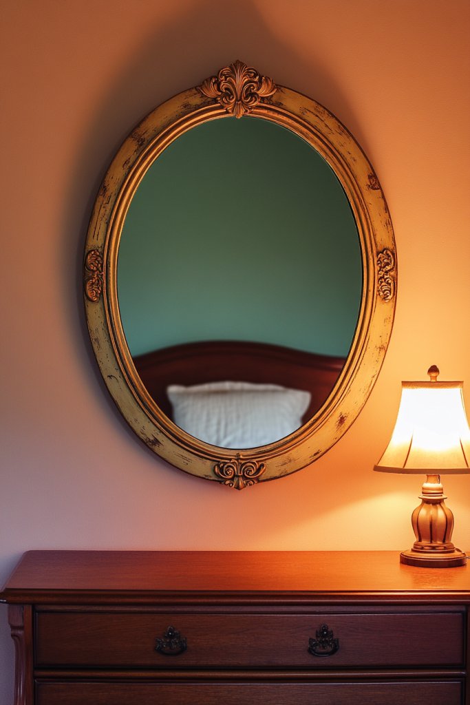 Feeling like your decor lacks a touch of timeless elegance? Antique oval mirrors instantly add vintage charm and a sense of history to any room. They’re perfect for those who love a nostalgic aesthetic but want to keep it refined. This idea appeals to anyone craving a cozy, classic ambiance with a hint of glamour.